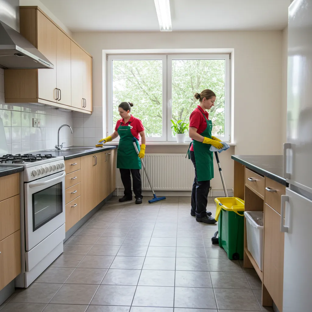 Detailed kitchen and bathroom cleaning.